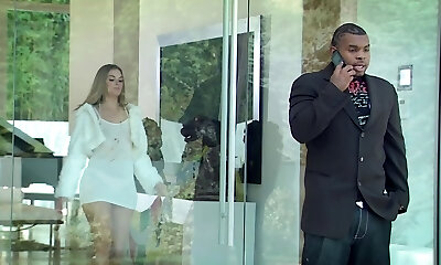 Big Black man seducing a skinny milky blonde for blow and sex
