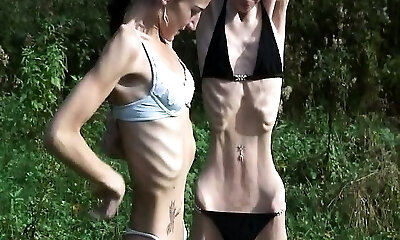 Kinky amateur skinny bony babes display off their sexy