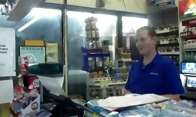 Sandy displaying and sucked by a clerk