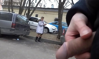 Exhibitionist Pops in front of a Woman