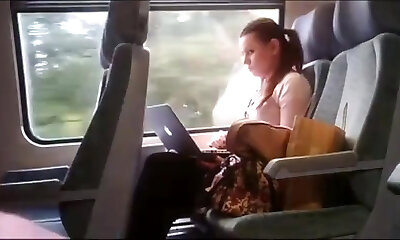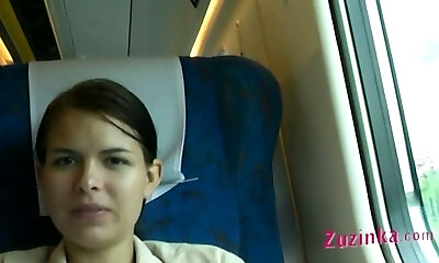 Shameless fuckslut Zuzinka flashes her shaved pussy in the train