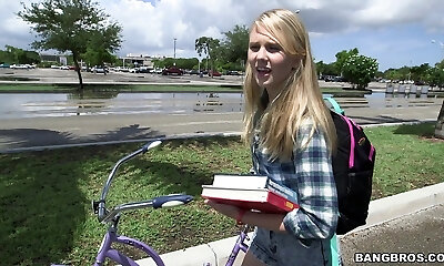 Fantastic towheaded in black sundress hooks up with a guy and goes with him