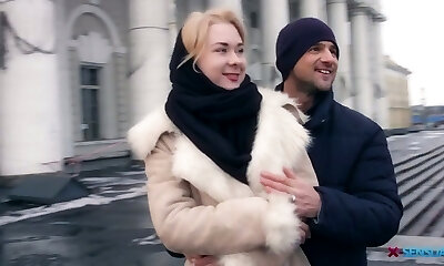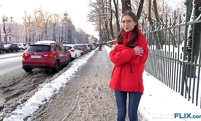 Teen babe got cold sans panties on public and went to the guy's house on the very first date