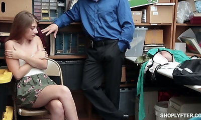 Two redhead teen shoplifter gets punish smashed hard