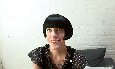 Full of emotions short haired brunette emo chick gets bald twat plowed