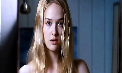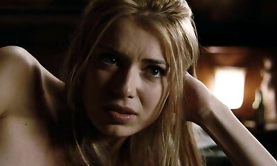 Jess Weixler nude lying on her back as a guy squeezes and