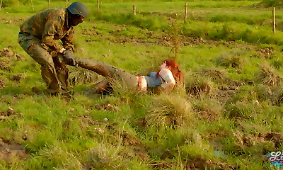Two brutal dudes fuck sex-hungry and roped up harlot Mona Wales